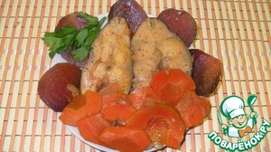 Рыба получается нежная, сочная и легкая. Подавать вместе с овощами (они тоже очень вкусные) и гарниром, например картофелем пюре или рисом.