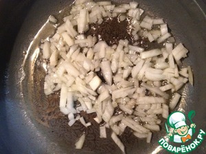 Лук слегка обжарить на растительном масле. Я для этого использовала масло от вяленых томатов