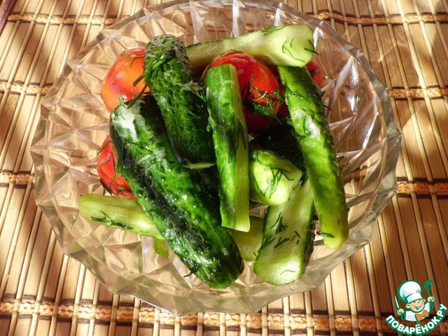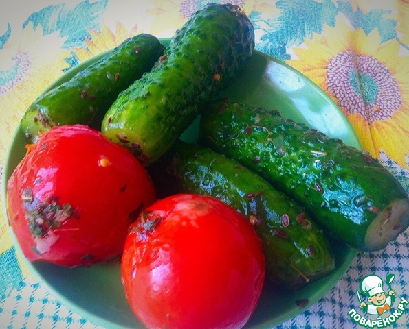 Рецепт «Быстрые малосольные огурцы и помидоры»: