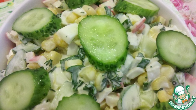 Добавляем к салату мелко нарезанные кубиком огурцы