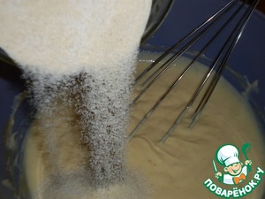 Всыпать смешанную с разрыхлителем манную крупу, тщательно перемешать.