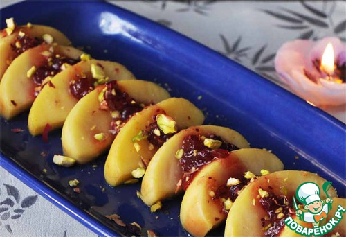 Рецепт «Десерт из яблок в клюквенном соусе»: