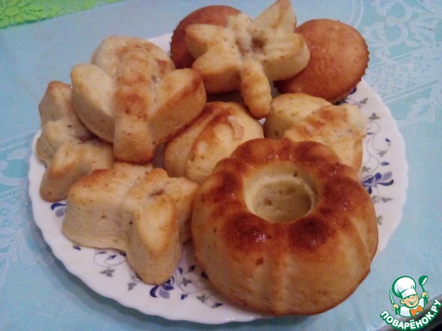 Формы для кексов смазываем сливочным маслом, наполняем их на 2/3 тестом и в каждый будущий кексик в серединку кладём по чайной ложке сгущёнки.