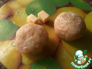 Из фарша мокрыми руками сформовать шарики, внутрь каждого положить кусочек сыра (можно добавить мелко нарезанную зелень петрушки и укропа, кусочки обжаренных грибов, холодное сливочное масло).