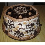 2 корж: 3 яйца взбиваем со 150 г сахара, добавляем 1 ст. л. какао, 150 г муки и 1 ч. л. разрыхлителя. Выпекаем 10 мин. при 180*С