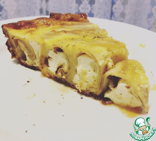 Заливаем сливочно-яичной смесью и отправляем в разогретую до 180 градусов духовку на 30 минут, чтобы запеклась заливка.