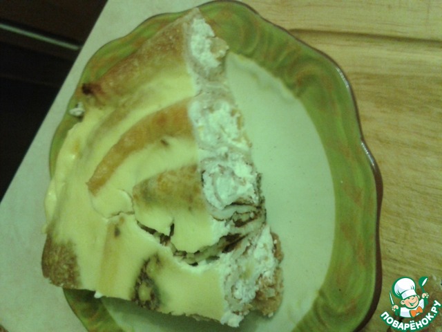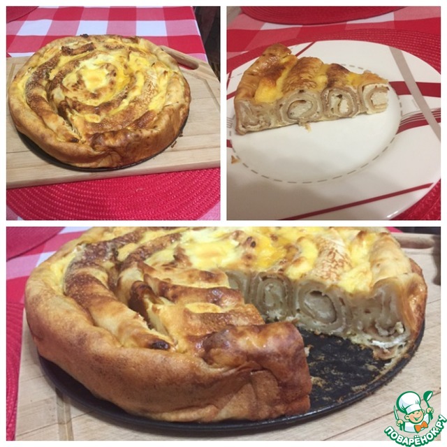 В смазанную разъёмную форму уложить налистники по кругу спирально.