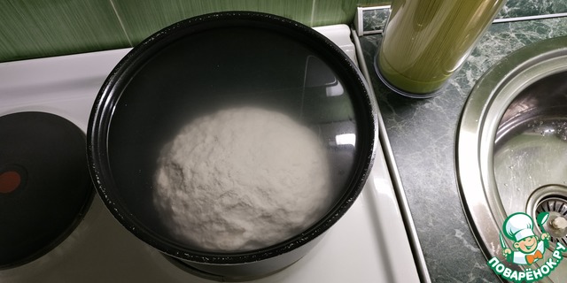Скатываем тесто в шар и опускаем его в глубокую кастрюлю с ледяной водой
