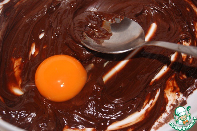Шоколад растопить, дать ему остыть и ввести в него 1 желток и цедру 0,5 ч. л., хорошо перемешать. -