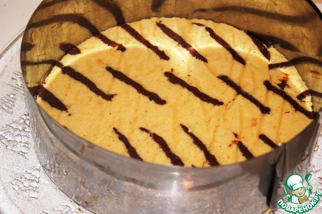 Шоколадный мусс не успел застыть, как положено, а апельсиновый начал застывать прямо на глазах… поэтому мне пришлось его протирать через сито, хотя протертый мусс оказался гораздо нежнее и вкуснее. Получились не слои мусса, а разводы, мои сказали, что все равно красиво… и похоже на тигриные разводы...
