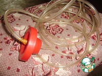 Пока подготовим крышку с трубкой. По истечении 5 дней сливаем порционно наше сусло. При помощи марли, сложенной в несколько слоев, отжимаем сок. Это очень трудный процесс, как раз для мужчин. |