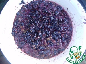 Виноградные ягоды давим очень тщательно небольшими порциями, чтоб почти каждая ягодка дала свой сок. Я это делала толкушкой. Эта "каша" называется сусло.