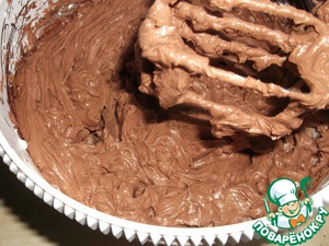 В творожную смесь добавить растопленный шоколад и 2 ст. л. крахмала, перемешать. Я перемешивала все ингредиенты миксером на средних оборотах.