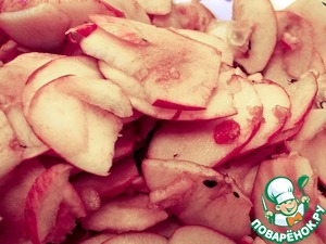 Измельчаем яблоки с помощью кухонного комбайна, используя насадку для шинковки. Либо измельчаем яблоки любым способом вручную.