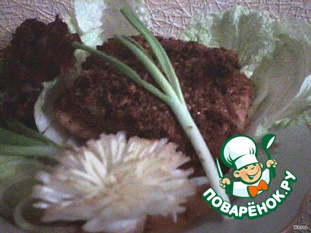 Когда мясо замариновалось обваливаем в размельченных орешках и в печку на часок при температуре 220 -230 градусов. Теперь готовим украшение к нашему мясу. Делаем астрочку.