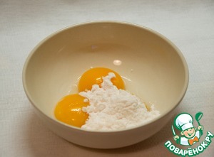 Соединить ванильный сахар с желтками и слегка взбить вручную.