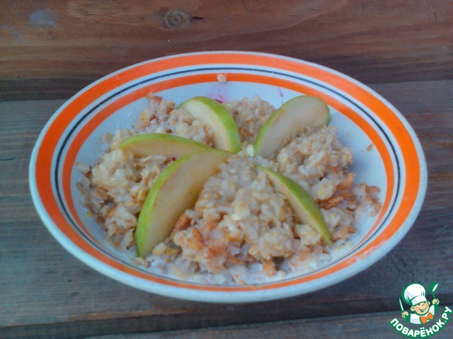 Нарезать яблоки, добавить в кашу мёд, орехи, яблоки по вкусу.