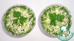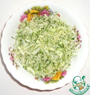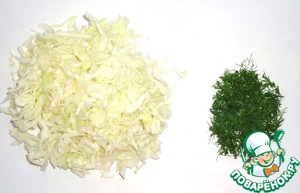 Белокочанную капусту тонко нарезать или нашинковать на крупной тёрке, зелень укропа мелко нарезать.