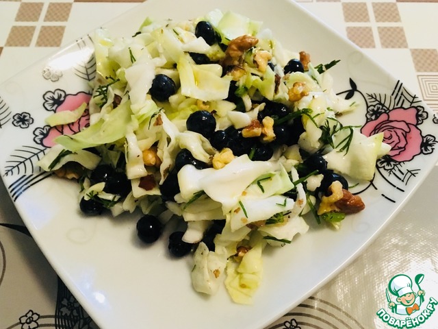 Рецепт «Салат из свежей капусты с черникой и орехами»: