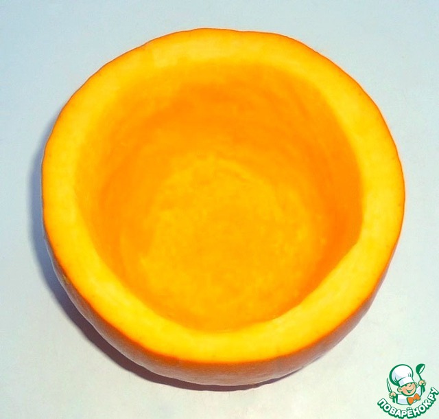 Затем у тыквы срезать крышечку, это составит примерно 1/3 часть тыквы.