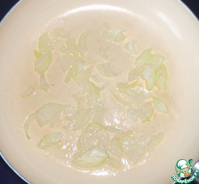 Репчатый лук очистить, нарезать и потушить до мягкости.