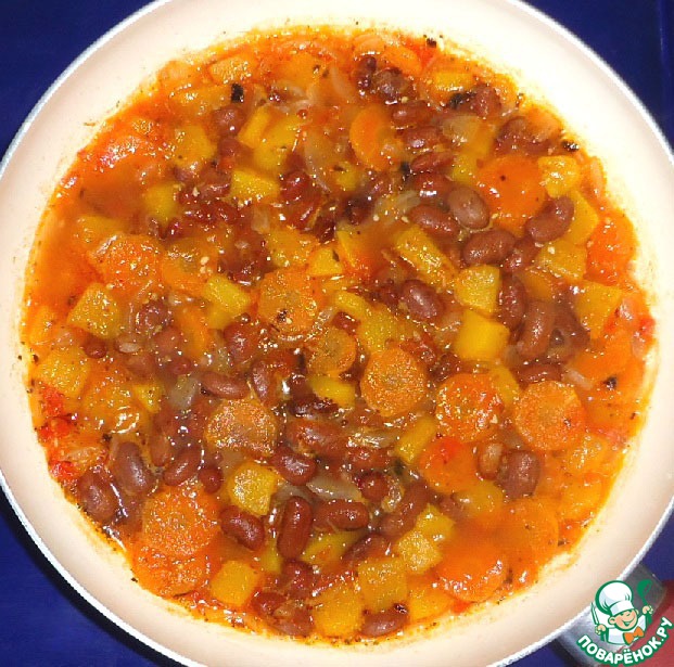 - Вода (для приготовления фасоли - 2 стак.; для приготовления супа - 1,5 стак.; для приготовления тыквы - 1 стак.) — 4,5 стак.