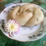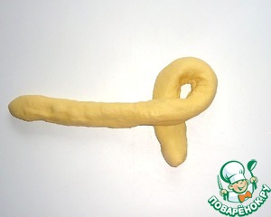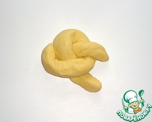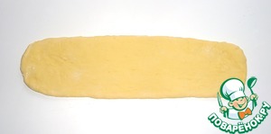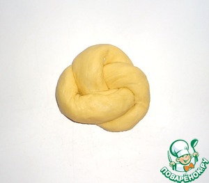 Тесто разделить на несколько кусочков. От размера кусочка будет зависеть размер булочки. Я разделила тесто на шесть равных частей.