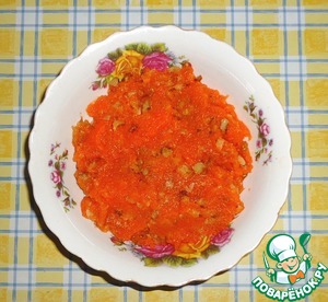 Пока тесто подходит, приготовим начинку. Для этого нужно отварить морковь и натереть на средней тёрке.