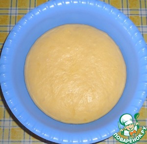 Тесто положить в глубокую чашку, накрыть, поставить в тёплое на 1 час.