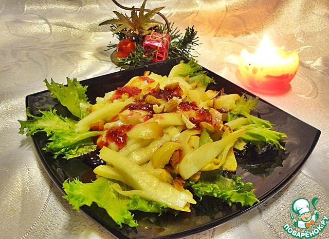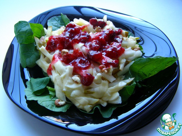 Интересный салат, благодаря нему я поняла, какое же это отличное сочетание сыра с грушей А кислинка клюквенного соуса придает свою пикантность. Спасибо за рецепт!