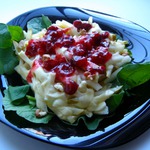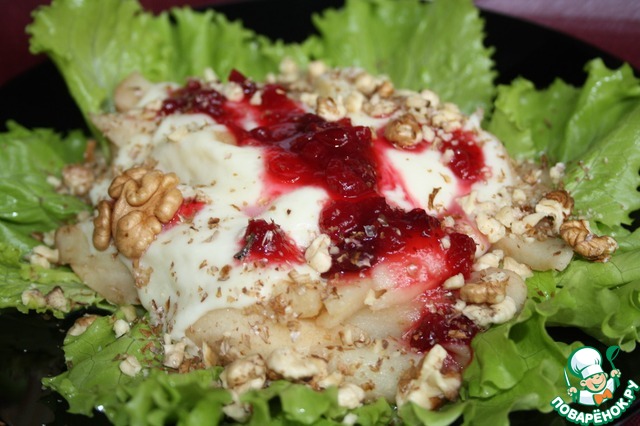 Отличный салат! Спасибо за рецепт! Сыр был другой и это немного испортило вкус на мой взгляд. Соус сама сделала - как раз клюква была. Моим понравилось очень. Хотя салаты без мяса за салаты не считают
