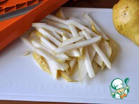 Грушу моем, нарезаем или натираем тонкими полосками.