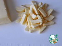 Моцареллу (используем ту, которая хорошо плавится) нарезаем произвольными кусочками.