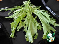 Листья салата (у меня фризе) моем и выкладываем на сервировочную тарелку.