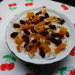 Изюм промыть, курагу нарезать четвертинками