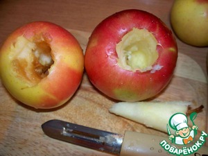 В яблоках удалить серединку, не разрезая яблока.