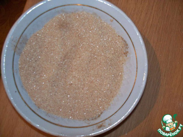 На отдельной тарелке смешать сахар с корицей.