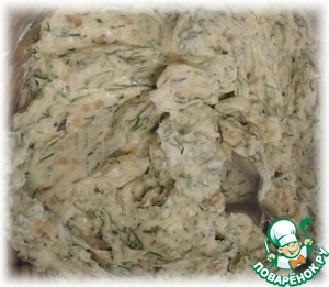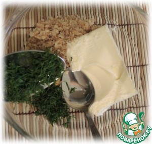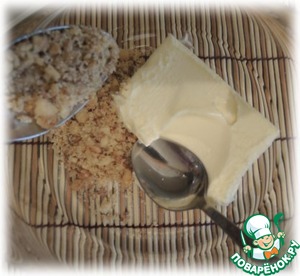 Теперь готовим ореховое масло. К размягченному сливочному маслу добавляем орехи.
