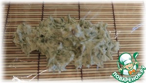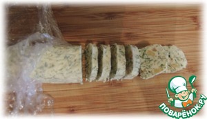 Формируем из него колбаску толщиной около 2 см. Кладем в морозилку.
