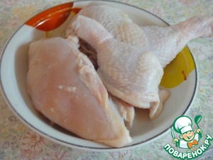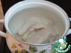 Добавить в кастрюлю 2 литра воды и выложить туда курицу