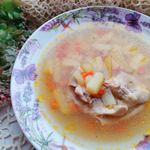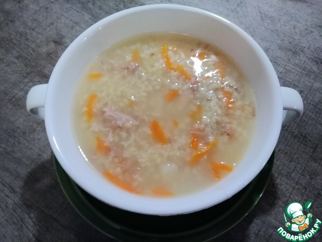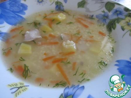 3. Пшено использовал не "россыпью", а быстро развариваемое в пакете. И добавлял его за 30 минут до готовности курицы. Так и варились вместе. Потом просто вынул из пакета и опять в суп.