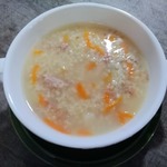 2. Морковь и картошку добавлял позднее, и нарезано ОЧЕНЬ МЕЛКО, буквально до "крошки". При варке пшена полностью разваривается и дает дополнительную густоту. Морковку не пассеровал, достаточно было жира от курицы и он прекрасно окрасился и так.