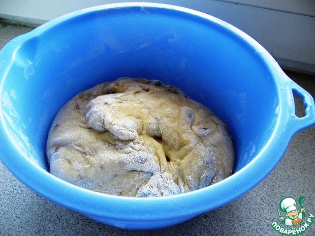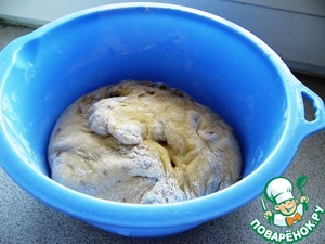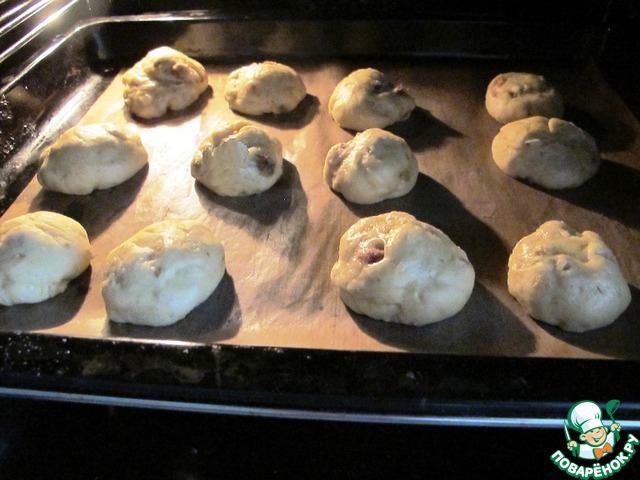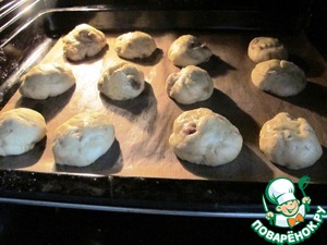 Вынуть тесто из холодильника, помесить на столе, присыпанном мукой. Слегка разогреть противень, положить на него кусочки теста размером с крупное яйцо и дать им расстояться примерно в течение часа. За это время они увеличатся в размере примерно в три раза.