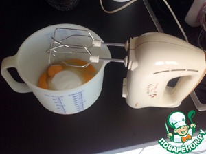 Яйцо взбиваем вместе с сахаром до получения густой массы.