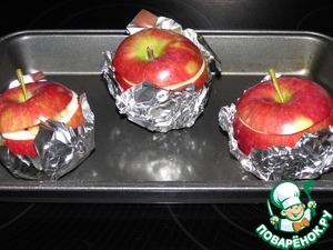 Запекать в заранее разогретой духовке до 160С 20-25 минут в зависимости от размера яблок.