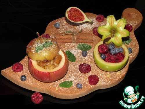 Рецепт «Печеные яблоки с сухофруктами и кедровыми орешками»: