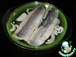 Рецепт «Сельдь на луково-яблочной подушке»:
