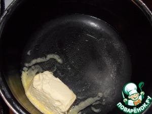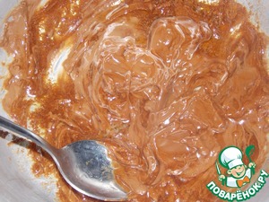 Берем пол-шоколадки и чайную ложку сливочного масла, растапливаем все на водяной бане.