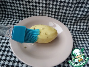 Каждую картофелину обмазать оливковым маслом. Обмазываем без фанатизма, чересчур обильно не следует.