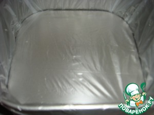 Квадратную форму 18Х18 см выстелить пищевой пленкой.